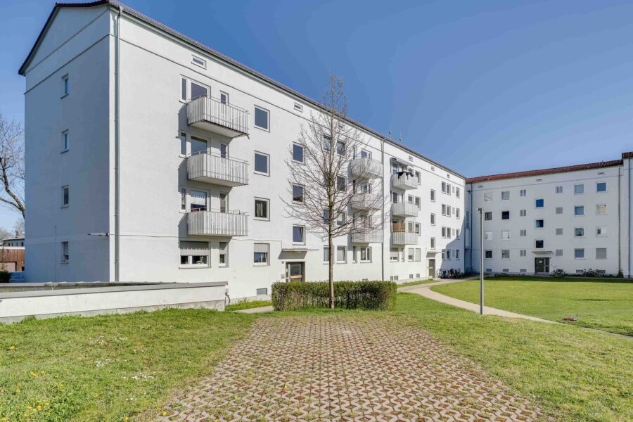 Auch Schulen, Kindergärten und Apotheken befinden sich in unmittelbarer Nähe. Hervorzuheben sind die tollen Grünanlagen entlang des Lechs, die zum Spazieren und Verweilen einladen.