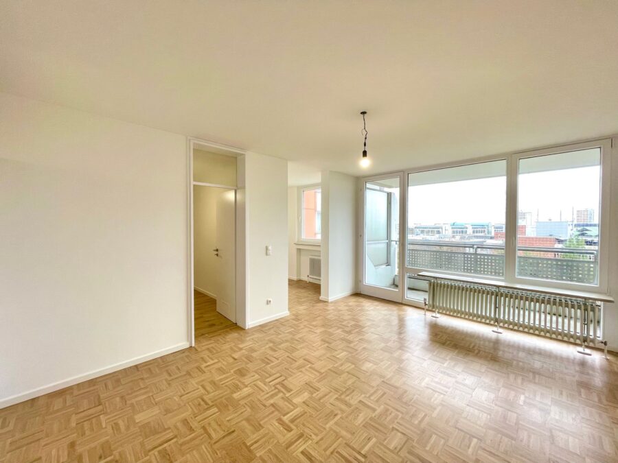 Die gut geschnittene 1,5-Zimmer-Wohnung befindet sich im 7. Obergeschoss eines Mehrfamilienhauses im Stadtteil Neuperlach. Die Wohnung wurde komplett modernisiert. In allen Wohnräumen sowie im Flur ist ein hochwertiger Parkettboden vorhanden. Das Bad ist mit einer Duschwanne und einem Waschmaschinenanschluss ausgestattet. Die Küche wird ohne Einbauten vermietet und kann so nach Ihren individuellen Wünschen gestaltet werden. Zusätzlich zum Abstellraum in der Wohnung gibt es ein Kellerabteil. Ein Tiefgaragenstellplatz kann optional über die örtliche Hausverwaltung angemietet werden.